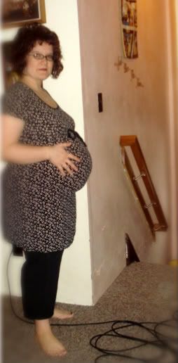 I feel like a house ! As is usual for me my baby belly is HUGE..and with this one it is all out front so I have to bend a bit backwards to walk so I don't fall over. :) Yes, it is a funny pic! You can laugh..LOL! :)